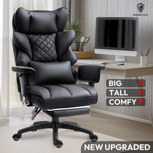 Dowinx Ergonomic Office Chair - Big & Tall Executive Desk Chair with Pocket Spring Lumbar Support, High-Back Adjustable Gaming Chair, Removable Footrest & 3D Armrests