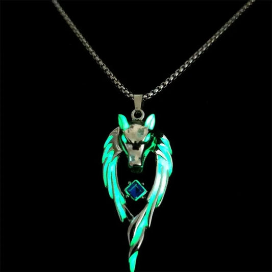 Simple Trend Niche Wolf Head Pendant Necklace Men and Women Glow-In-The-Dark Jewelry Hip Hop Punk Party Niche Popularpendantgift